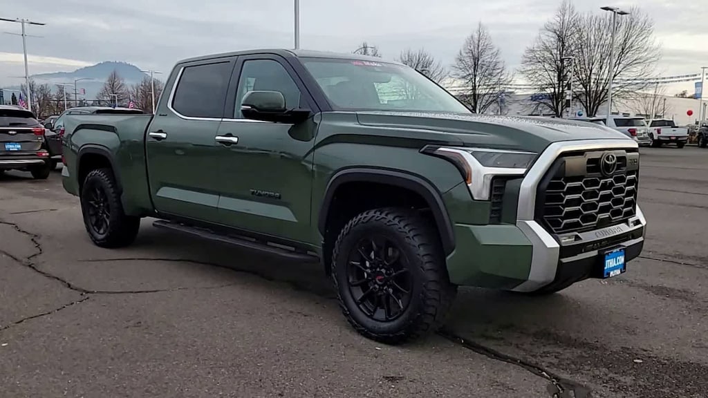 TRD OFF-ROAD PACKAGE Wheels: 20 Black Alloy, Black Grille w/Chrome Surround, Multi-Terrain Back Monitor, Color-Keyed Outside Mirrors, Panoramic View Back Monitor, Under Cover & Protector, TRD Off-Road Suspension w/Bilstein Shocks, Front & Rear Mud Guards, Bedside TRD Off Road Decal, TRD CAST ALUMINUM RUNNING BOARD (TMS), NON-SKID SPRAY-ON BED LINER (TMS), RADIO: PREMIUM AUDIO W/JBL 12 JBL speakers, Human Machine Interface (HMI), 14 touchscreen, wireless Apple CarPlay®, Android Auto®, virtual Intelligent Assistant, cloud-based navigation system w/real-time Over The Air (OTA) updates for mapping and Points Of Interest (POI), voice activation and Bluetooth®, HEATED LEATHER STEERING WHEEL. Toyota Limited with Army Green exterior and Black interior features a V6 Cylinder Engine with 389 HP at 5200 RPM*. Comes with a Lithia 60 Day/3,000 Mile Limited Warranty